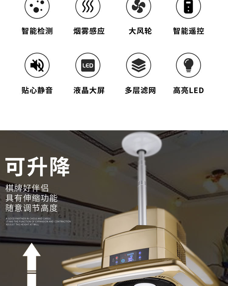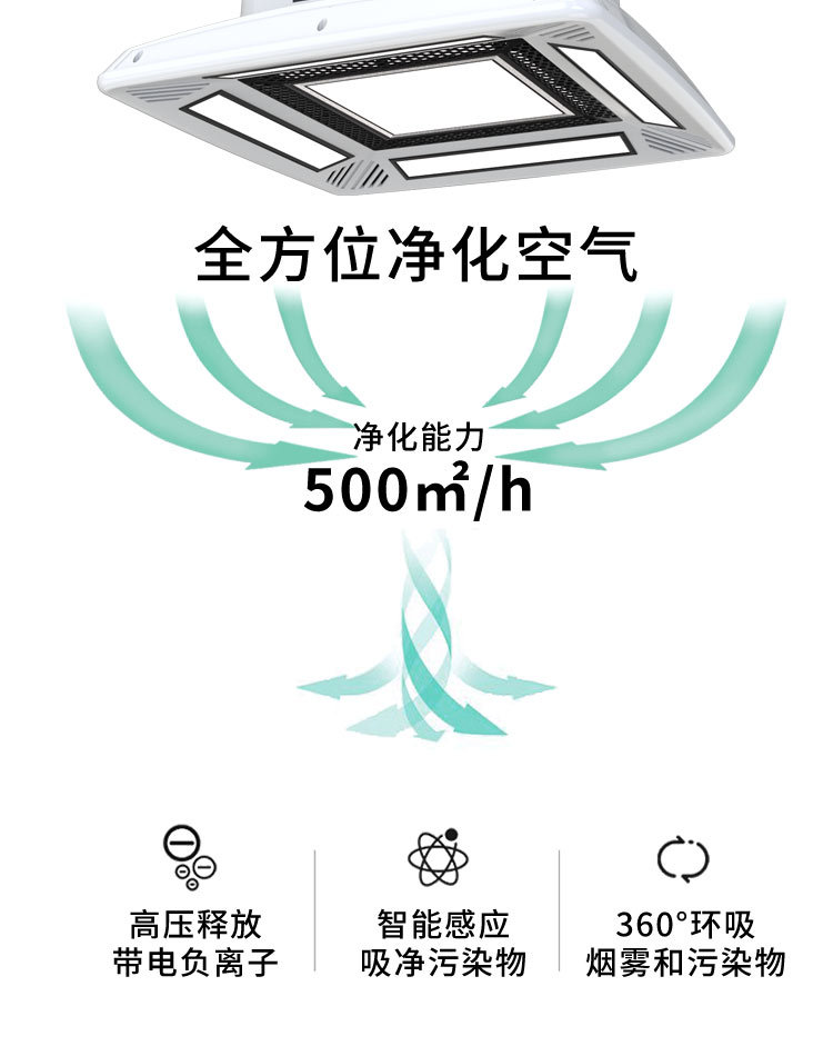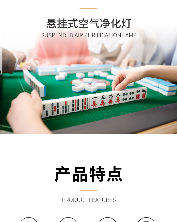 麻將館、棋牌室適用,能有效地消除室內(nèi)空氣中的煙塵、煙霧(有效地預(yù)防“二手煙”對人身體的危害)及室內(nèi)裝修產(chǎn)生的有害氣體。集空氣凈化、照明、裝飾于一體。