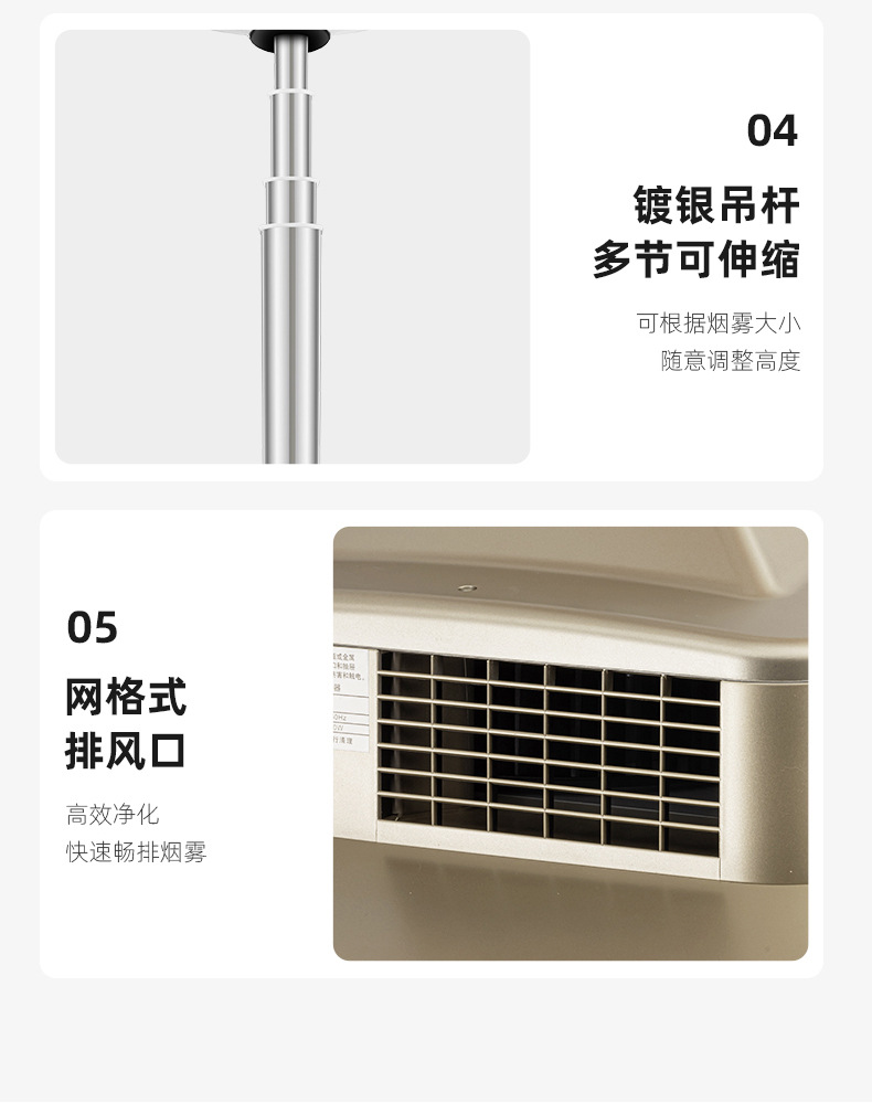 3.遙控升降,低噪強勁快速除煙