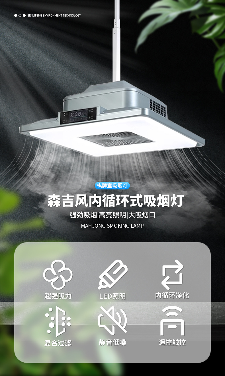 棋牌室、會客廳、包間、KTV、會所、候車廳等除煙除塵凈化燈,集吸煙、照明、裝飾三位一體
