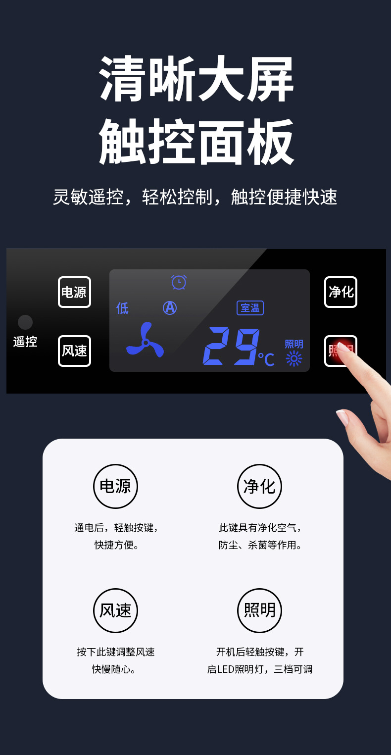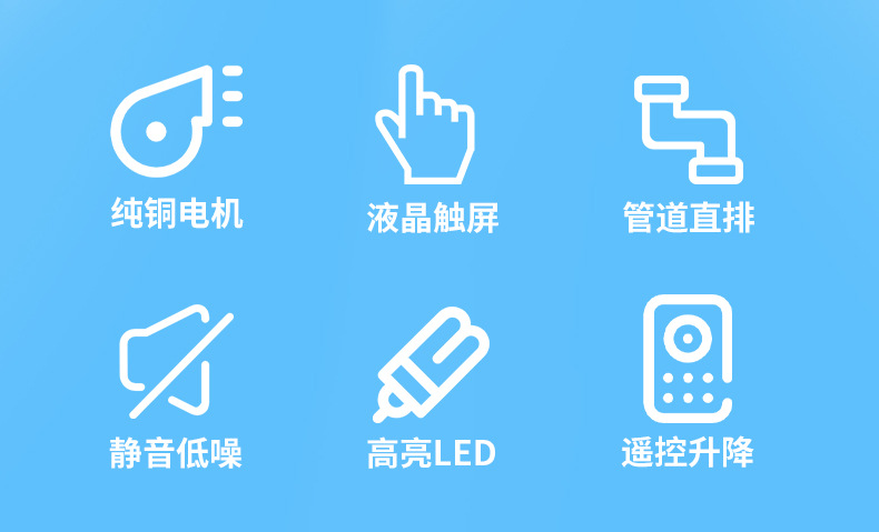 【功能】高亮LED照明、大功率吸煙、觸屏遙控